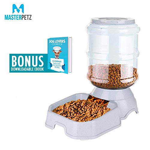 MASTERPETZ Dog Feeding Bowl for Dogs Cats Puppy Kitten Small Medium Pets with 6 Pound Capacity Automatic Gravity Feeder and Food Dispenser - Premium PP Safety Twist Mouth Ring with Ebook, Feeding Feeder