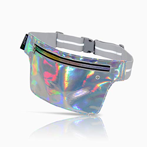 fitter's niche Holographic Ultra Slim Fanny Pack, Hologram Metallic Neon Waist Bag, Multiple Inner Pockets, Water Resistant, Reflective Adjustable Elastic Belt, 80s Bum Bag for Rave, Festival, Travel, Party, mens, womens, kids, adults, teens