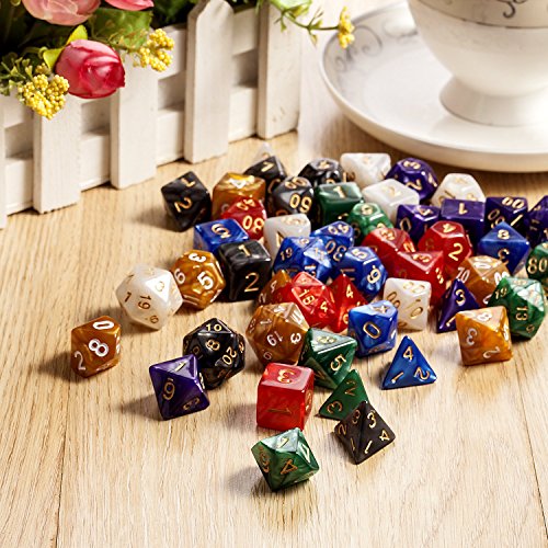 DNDND D&D Dice Sets, 7 Full Sets Polyhedral Dice Sets with Drawstring Bag for RPG, Dungeons and Dragons, Rolling Game, Pathfinder and MTG, Including Red, Black, White ,Godden, Green, Blue and Purple., black,white,goden,red,blue,pruple and green Item Sku: