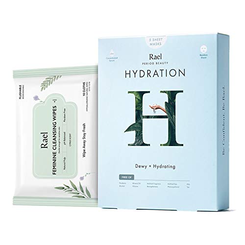 Rael Sheet Masks Value Packs - Real Natural Facial Masks With Moisturizing 1 Pack(5 Sheets) and Natural Feminine Wipes 1 Pack by Rael, Hydro Lock