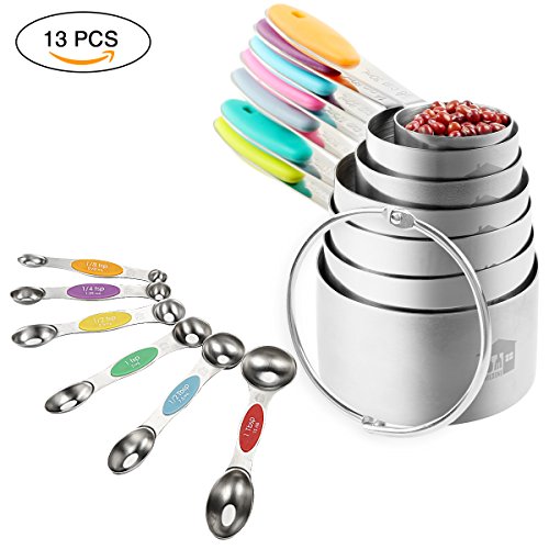 • Measuring Cups Spoons Set - Wildone Stainless Steel Cups and Magnetic Measuring Spoons Set of 13, for Dry and Liquid Ingredients, including 7 Nesting Cups, 6 Spoons