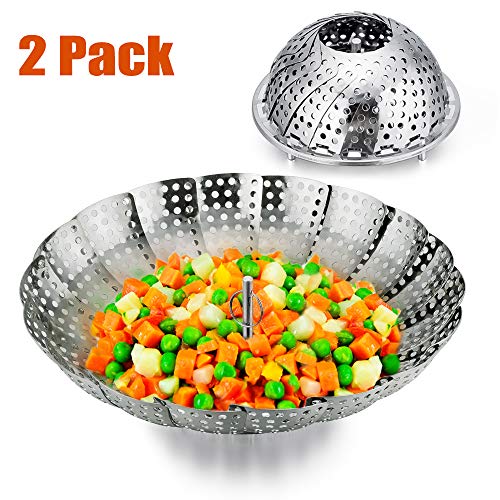 • P&P CHEF TWO-PACK Vegetable Steamer Basket, Stainless Steel Steamer Basket, Fits Various Size Instant Pots Pressure Cooker, Collapsible & Dishwasher Safe