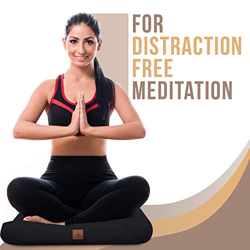 Seat Of Your Soul Zabuton Meditation Cushion - USA Buckwheat Hulls in 10 Color Organic Cotton; Square Yoga Pillow Case & Zipper Liner To Adjust Volume; Match Zafu or Crescent Set For Men & Women (Black)
