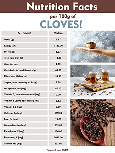 • Organic premium hand picked whole cloves 2.5oz, Packed from a USDA Certified Organic Farm in Sri Lanka (stand up resealable pouch)