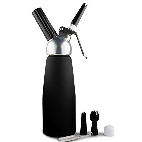 Sivaphe Cream Whipper Gourmet Whip Culinary Aluminum Threads Whipped Cream Dispenser Maker with 3 Decorating Nozzles Leak-proof - Use 7.5-8 Gram N2O Cream Chargers (Not Included), Black