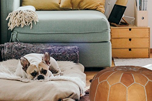 nomad&fashion set of 2 handmade leather Moroccan poufs ottoman round footstool color Light Almond Cognac Unstuffed, Light Almond Cognacc (stitched in white)