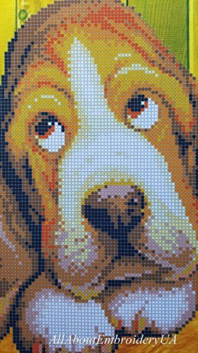 AllAboutEmbroideryUA Bead Embroidery Needlepoint kit Basset Hound Beaded Cross Stitch Dog Lover DIY Gift idea Puppy Orange Dog Beading Pattern Cute Animal Chart