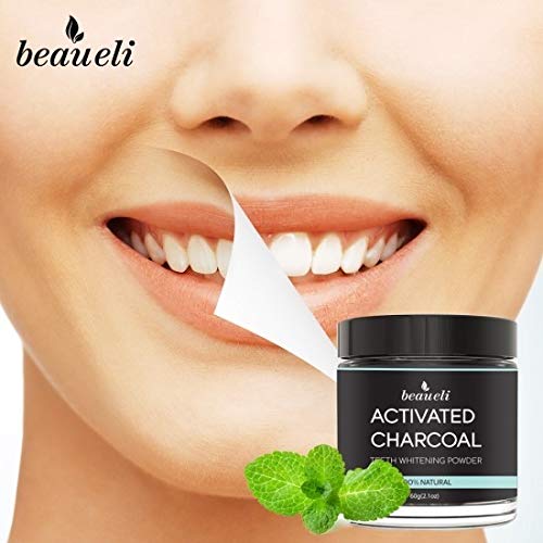 • Beaueli Activated Charcoal Teeth Whitening Powder (2.1 Oz) Natural Black Tooth Whitener Coconut Charcoal Toothpaste Powder for Sensitive Teeth