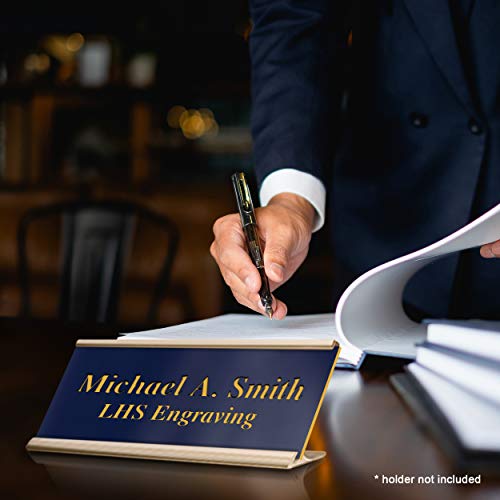• Engraved Custom Door Plate Navy Blue Plastic Office Door Sign with Gold Letters - Made in USA 2x12 B10