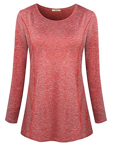• Viracy Sports Tops for Women, Juniors Stretchy Shirts Petite Long Sleeve Yoga Running T Shirt Sliming Active Wear Basic Simple Athletic Tunic Blouses Primary Red M