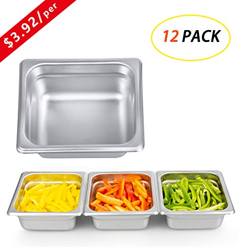 • 2 1/2" Deep Steam Table Pan 1/6 Size, Kitma 1.2 Quart Stainless Steel Anti-Jam Standard Weight Hotel GN Food Pans - NSF (6.93"L x 6.25"W)- 12 Pack