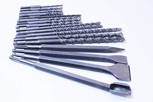 MAX-CRAFT 17Pcs SDS Plus Rotary Hammer Drill Bits and Chisel Bits Hole Tool Set Masonry SDS Drill Bit Set Drilling Concrete,Masonry, Wall, Bricks, Stone, Road., 17Pcs SDS and Chisel Bit Set