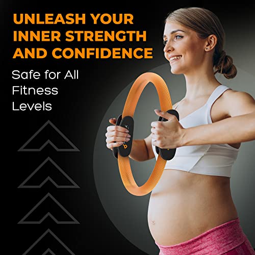 MANTRA SPORTS Pilates Ring Circle, Fitness Ring Magic Circle Pilates Ring 14 Inch, Inner Thigh Exercise Equipment for Women, Thigh Master Pilates Equipment for Home Workout, Pelvic Floor Muscle Trainer Power Kit, Orange