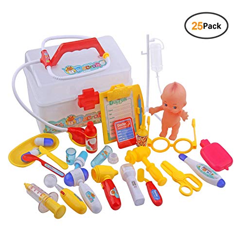 • STONEKAE Doctor Kit for Kids, 25 Pieces Pretend-n-Play Dentist Medical Kit with Electronic Stethoscope and Coat for Kids, School Classroom, Easter Stuffers and Doctor Roleplay Costu