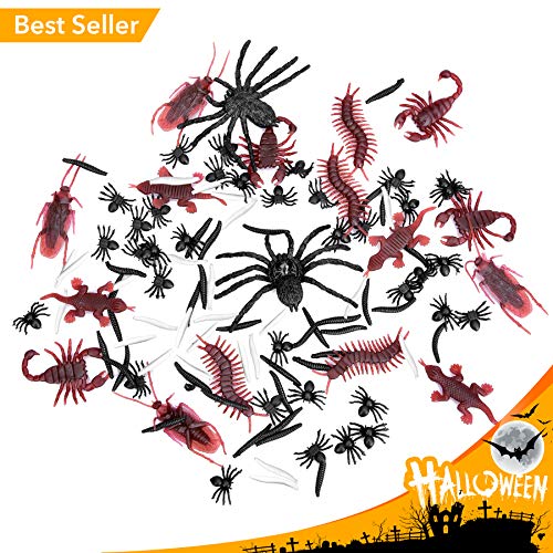 • Halloween 120 Pieces ABS Realistic Bugs, 8 Kinds Fake Assorted Insects, Cockroaches, Spiders, Worms, Scorpions, Centipedes, Geckos for Halloween Decoration and Party Favor, Novelty Props &Toys
