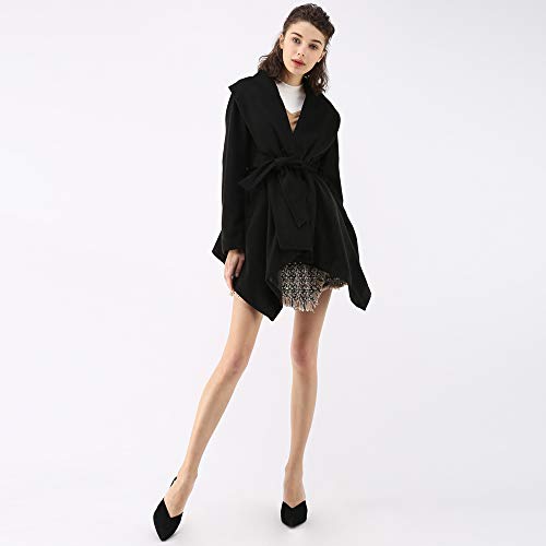 Chicwish Women's Turn Down Shawl Collar Open Front Long Sleeve Black Asymmetric Hemline Wool Blend Coat, womens