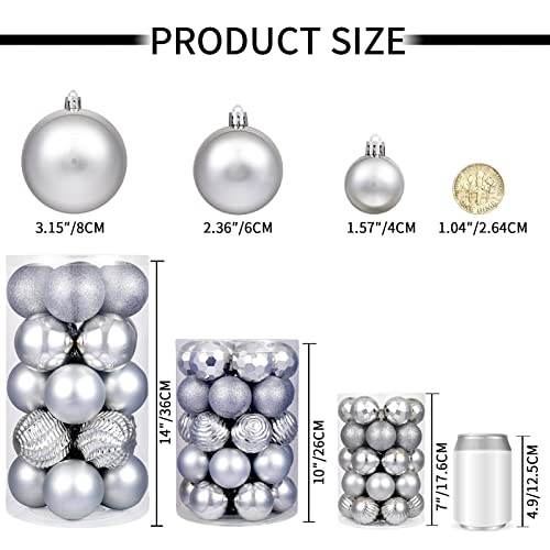XmasExp 60mm/2.36" Christmas Ball Ornaments Shatterproof Christmas Ornaments Set Decorations for Xmas Tree Balls - 24ct (2.36'', Silver)
