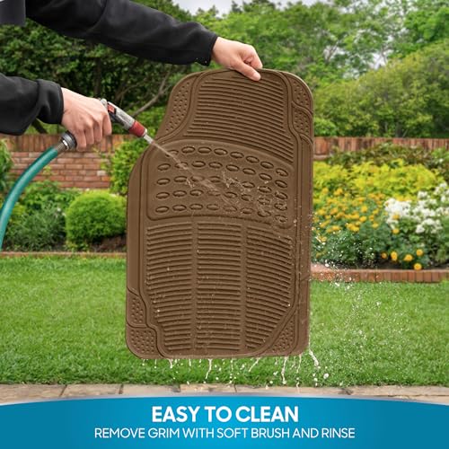• BDK ProLiner Floor Mats for Cars Trucks SUV, 3-Piece All-Weather Car Mats with Universal Fit Design, Durable Car Floor Mats with Capture Ridges, Waterproof Rubber Floor Mats for Cars (Beige)
