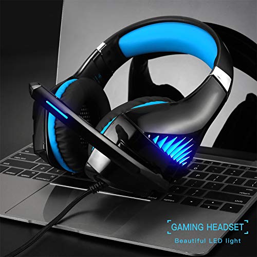 • Gaming Headset for Xbox One PS4 PC Beexcellent GM-5 Stereo Surround Sound Noise Cancelling Over Ear Headphones with Mic, LED Lights, Volume Control for Laptop, Mac, iPad, Nintendo Switch Games -Blue