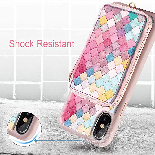 • ZVE Case for Apple iPhone Xs and iPhone X, 5.8 inch, Zipper Wallet Case Leather Shockproof Cover with Credit Card Holder Slot Handbag Purse Print Case for Apple iPhone Xs and X - Mermaid Wall