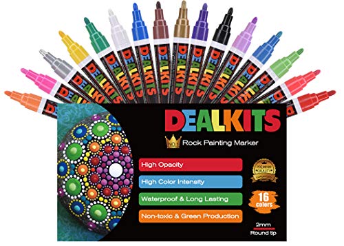 • DealKits 16 Colors Paint Marker Pens for Rock Painting [Oil-Based] [Quick Dry] [Water Resistant] for Art Rock Painting Wood Glass Metal and Ceramic, Medium Tip ...