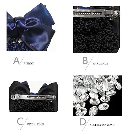 • EOPER 3 Pieces Solid Color Satin Bow Barrette Bowknot Snood Net Hair Clip Cover Women Hair Accessories, Red