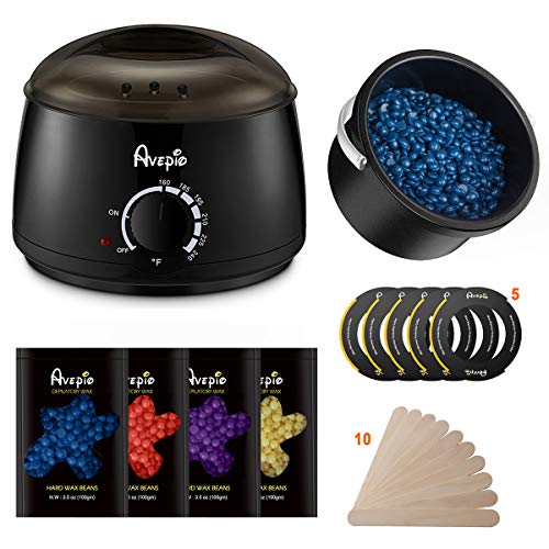 avepio Wax Warmer Hair Removal Home Waxing Kit, Nonstick Electric Pot Heater with 4 Flavors Hard Wax Beans(14.1oz)and 10 Wax Applicator Sticks for Painless Wax of Legs, Face, Body, Bikini Area [Upgraded]