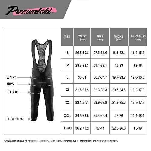 • Przewalski Men's 3/4 Capris Cycling Bib Shorts, 4D Padded Compression Bike Tights Pants, Classic Series, Black/4XL