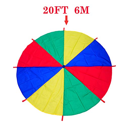 • Uglyfish Kids Play Parachute - 6 ft Rainbow Play Parachute for Kids with 9 Handles for 4-8 Kids Tent Cooperative Games Birthday Gift,Promote Teamwork, Fitness, Social Bonding for Ages 3+