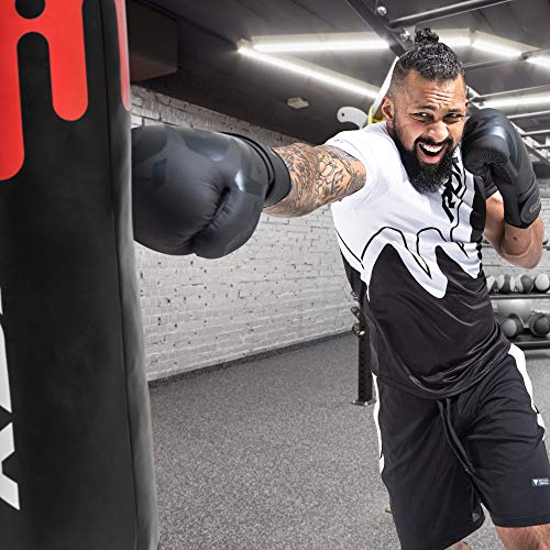 • RDX Boxing Gloves for Training Muay Thai | Matte Black Convex Skin Leather Gloves for Sparring, Kickboxing, Fighting, Punch Bags and Focus Pads Punching