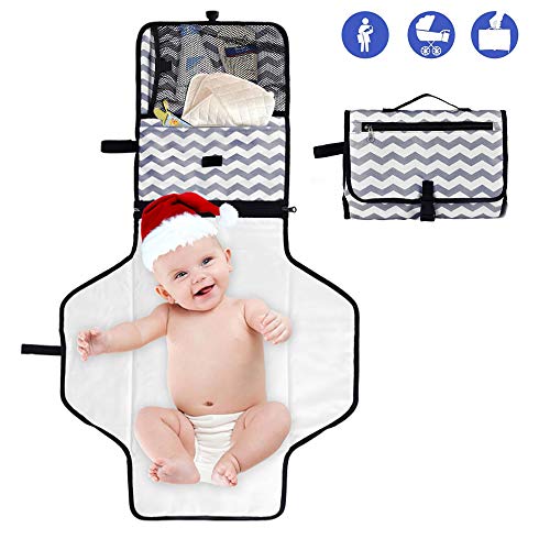 • Diaper Changing Pad Portable,Waterproof Diaper Changing Station,Wipeable Baby Mat,Travel Changer Station Kit for Baby, Folding Diaper Pad Clutch,Diaper Pouch,Diaper Bag (Gray)