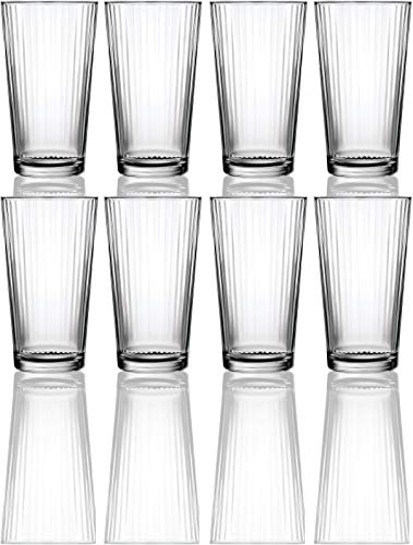 • Circleware 40105 Hill Street Set of 8 Heavy Base Highball Tumbler Drinking Glasses, 15.75 oz Beverage Cups for Water, Juice, Milk, Beer, Ice Tea and Farmhouse Decor, 8pc, Spectrum