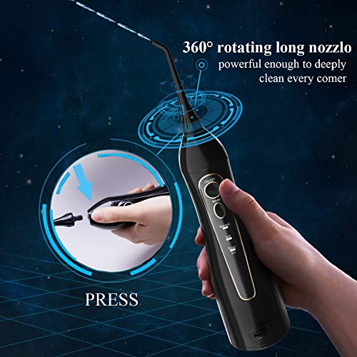 Cordless Water Flosser Oral Irrigator - Fairywill Professional Rechargable Portable Dental Water Jet For Braces and Orthodontic Cleaning, Travel and Home Use, Black