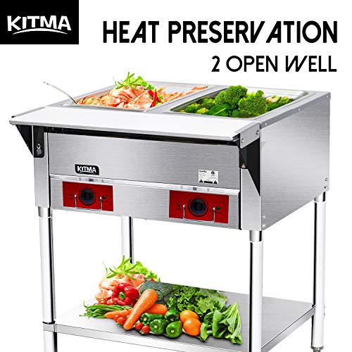 • 110 V Commercial Electric Food Warmer – Kitma 2 Pot Stainless Steel Steam Table, Buffet Server for Catering and Restaurants, Only Ship to CA, NV, AZ