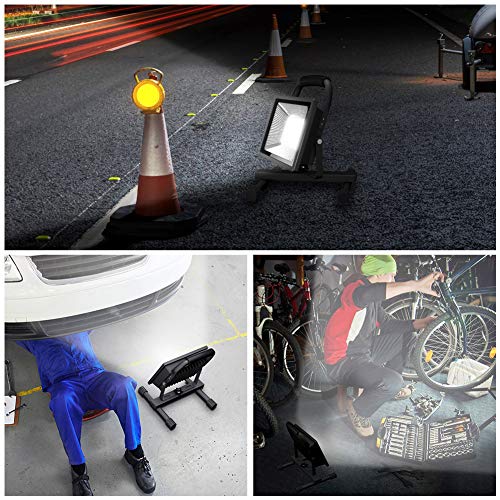 • GLORIOUS-LITE 30W LED Work Light Portable, 3000LM LED Outdoor Flood Lights, 6500K White Light,16ft/5M Cord with Plug, IP66 Waterproof, Adjustable Angle Stand Working Lights for Workshop, Garage