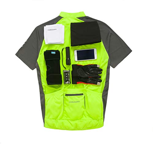 • KORAMAN Men's Reflective Short Sleeve Cycling Jersey with Zipper Pocket Quick-Dry Breathable Biking Shirt (Gray, M)