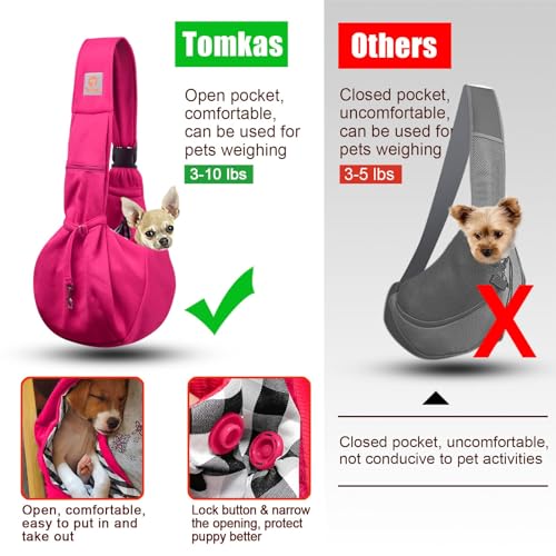 • TOMKAS Dog Sling Carrier for Small Dogs Puppy Carrier for Small Dogs (Rose red, Adjustable Strap for 3-10 lbs & Zipper Pocket)