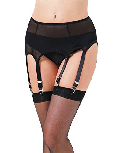 • E-Laurels Sexy Women's Mesh Suspender/Garter Belt with Six Straps Metal Clip for Thigh High Stockings (Black, Medium)