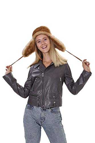 • Zavelio Unisex Shearling Sheepskin Leather Aviator Russian Ushanka Trapper Winter Fur Hat (Tan, X-Large)