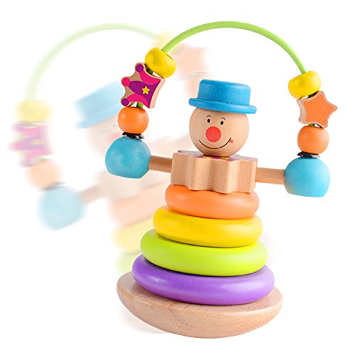 • KAJA Wooden Ring Rainbow Stacker Baby Stacking Up Toys Blocks Stacker with Beads Maze Classic Developmental Sorting and Stacking Toy (Clown)