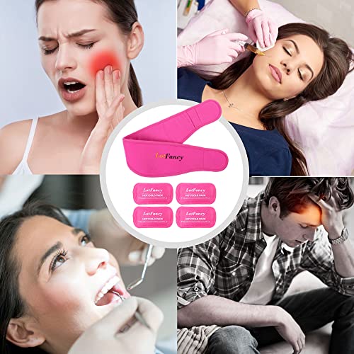 • LotFancy Face Ice Pack Wrap with 4 Reusable Hot Cold Therapy Gel Packs, Pain Relief for TMJ, TMD, Chin, Wisdom Teeth, Oral and Facial Surgery, Dental Implants, Pink