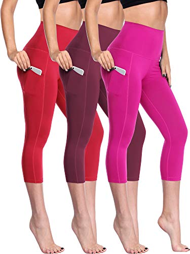 • Neleus Women's 3 Pack Tummy Control High Waist Capris Leggings with Two Pockets,109,Red,Wine Red,Rose Red,M