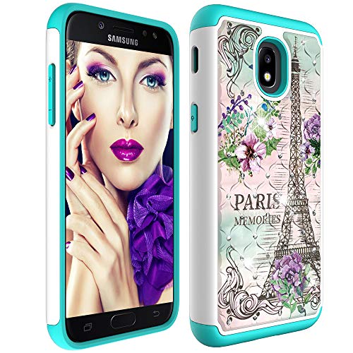 • Galaxy J7 2018 Case with Screen Protector,Galaxy J7 Star/J7 Aura/J7 Aero/J7 Top/J7 Crown Glitter Sparkle Bling Studded Rhinestone Crystal Hybrid Dual Layer Armor Case Paris Memories Tower Flowers