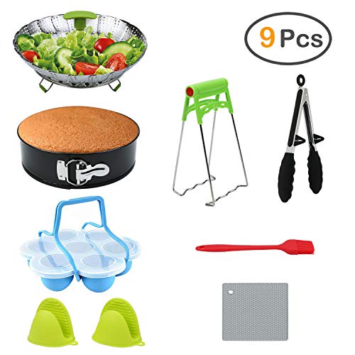 9-Piece Pressure Cooker Accessories, ZOUTOG Steamer Cookware Set with Springform Pan/Steamer Basket/Egg Bites Molds/Oven Mitts/Kitchen Tongs and more - Fits 5, 6 and 8 Qt Pressure Cooker