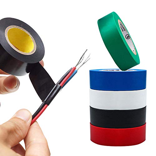 • Maximm PVC Vinyl Electrical Tape, UL Listed, Heat Resistant, Flame Retardant, Waterproof, Black, White, Blue, Red & Green Colored 10-Pack
