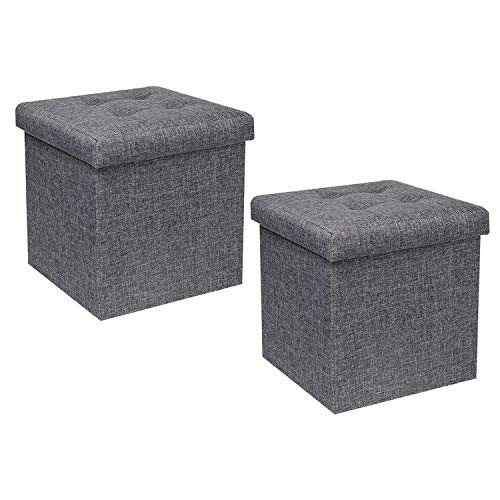 B FSOBEIIALEO Storage Ottoman Cube, Toy Chest Folding Footrest Stool Seat, Linen Grey 12.6"X12.6"X12.6" (2 Pack), 32linen-grey-double