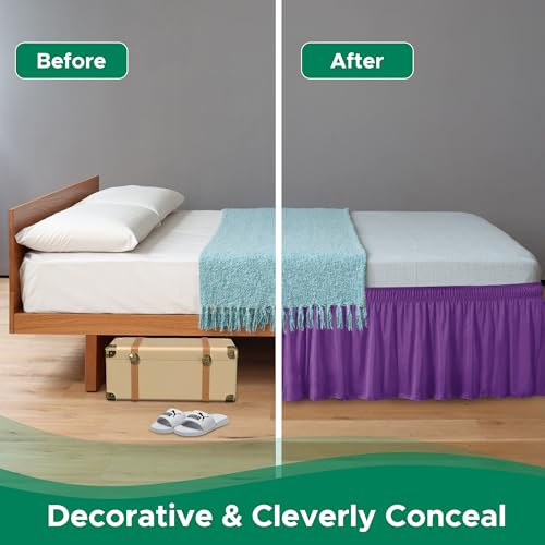 • Biscaynebay Wrap Around Bed Skirts for Full & Full XL Beds 15" Drop, Eggplant Adjustable Elastic Dust Ruffles Easy Fit Wrinkle & Fade Resistant Silky Luxurious Fabric Machine Washable