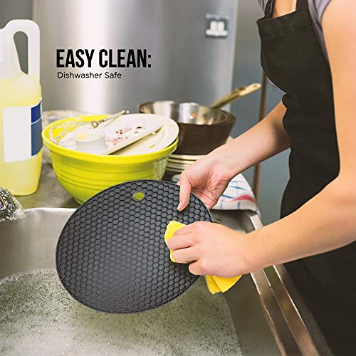 • Premium Silicone Trivet Mats: 4 Multi-purpose Pot Holder, Oven Mitts & Hot Pads– Versatile, Heat Resistant, Non-slip Jar Opener, Gripper Pad, Garlic Peeler, Drying Mat, Coaster - Heavy-Duty (GRAY)