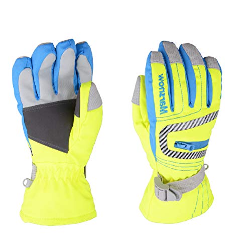• Azarxis Kids Ski Snowboard Gloves, Winter Thermal Warm Waterproof and Breathable Snow Gloves with Zipper Pocket for Skiing (M, Green)