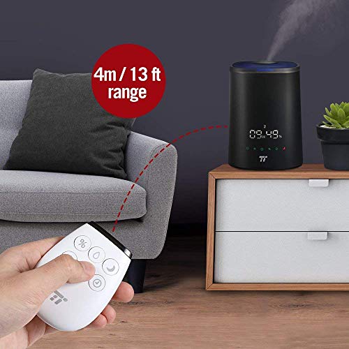 • TaoTronics Top Fill Humidifiers for Bedroom Babies Room, 15-30 Hours, Essential Oil Compatible, 7 Color LED Lights, Remote Control, Sleep Mode, Timer, Humidity -(4.5L/1.18gal, 100-240V)
